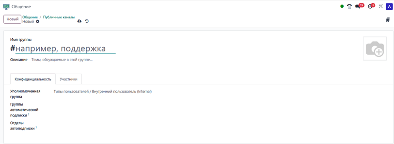Если включены настройки автоматической подписки для групп и отделов, участники будут автоматически добавляться в группы или отделы. Вы можете получить доступ к этим настройкам, выбрав опцию Конфиденциальность. На вкладке Участники вы можете добавить в группу других пользователей.