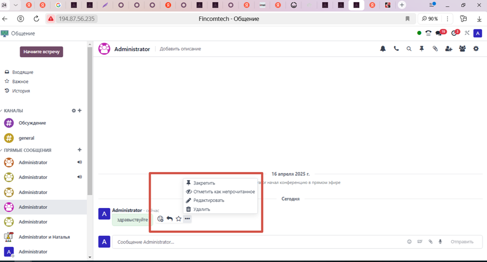 При выборе Обрабатывать в Финкомтех вышеуказанные уведомления отображаются в Входящих приложения Общения.