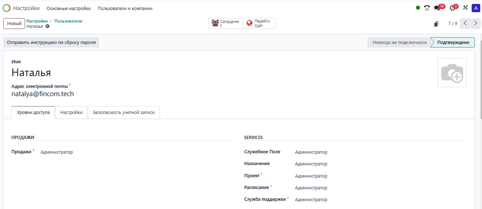 Чтобы получить доступ к пользовательским настройкам приложения "Общение", перейдите в Настройки ‣ Управление пользователями, выберите пользователя и нажмите на вкладку Настройки.