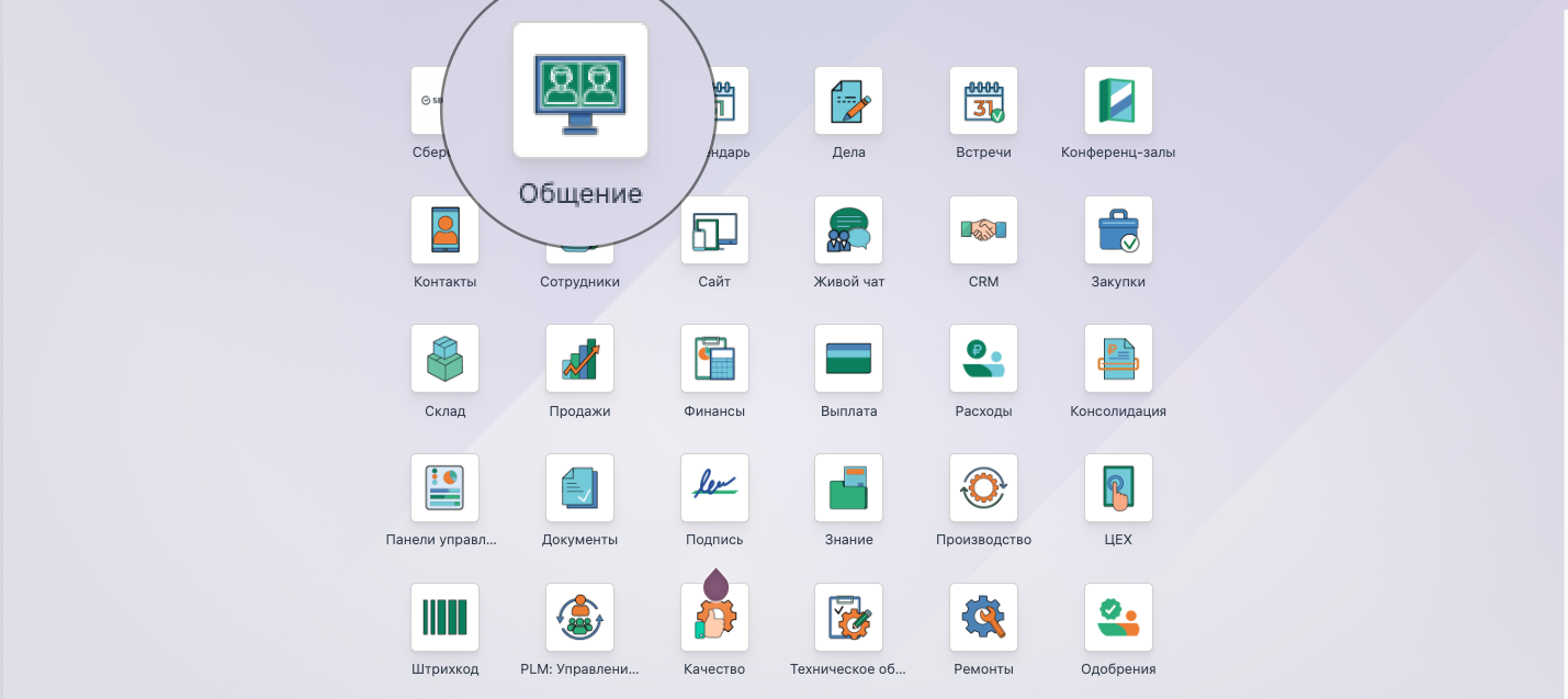Общение — это модуль для внутренней коммуникации, который помогает сотрудникам обмениваться сообщениями, заметками, файлами и совершать видеозвонки. В нём доступен постоянный чат, который можно открыть из разных модулей, а также отдельная панель для общения.