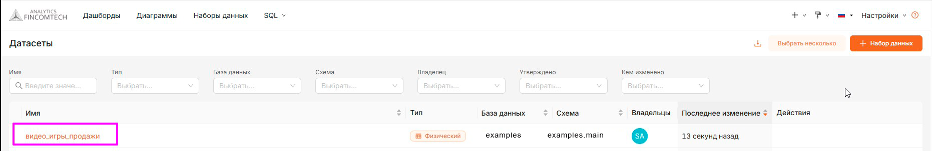 Теперь вы должны увидеть свой набор данных в списке наборов данных.