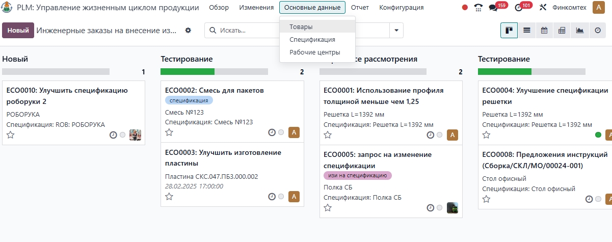 ИЗМЕНЕНИЯ В СПЕЦИФИКАЦИЯХ МОМЕНТАЛЬНО ПЕРЕДАЮТСЯ В МОДУЛИ ПРОИЗВОДСТВО И СКЛАД