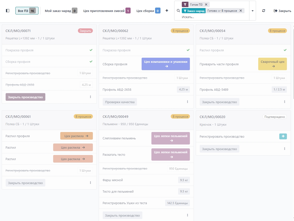 МОДУЛЬ ЦЕХ ОБЕСПЕЧИВАЕТ ОПЕРАТИВНОЕ УПРАВЛЕНИЕ ПРОИЗВОДСТВЕННЫМИ ПОДРАЗДЕЛЕНИЯМИ И ПОЛНУЮ ПРОЗРАЧНОСТЬ ВСЕХ ОПЕРАЦИЙ НА МЕСТАХ.